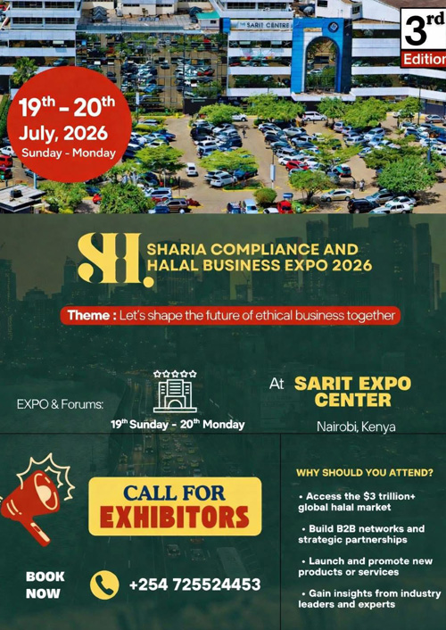 The 3rd Edition of the Sharia Compliance and Halal Business Expo 2026 will bring together leading stakeholders from across Africa and beyond for high-level dialogue on Islamic finance, halal-certified products, and ethical investment opportunities—reinforcing Kenya’s role as a strategic hub in the fast-growing global halal economy.
